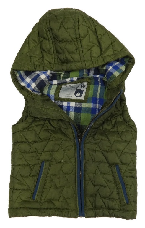 Khaki šusťáková prošívaná zateplená vesta s kapucí TU