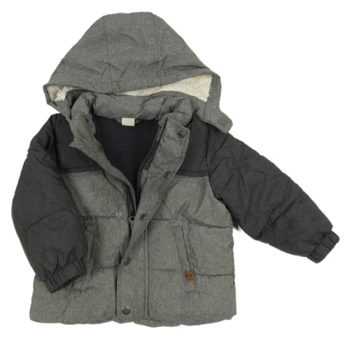 Šedo-tmavošedá melírovaná prošívaná šusťáková zimní bunda s odepínací kapucí H&M