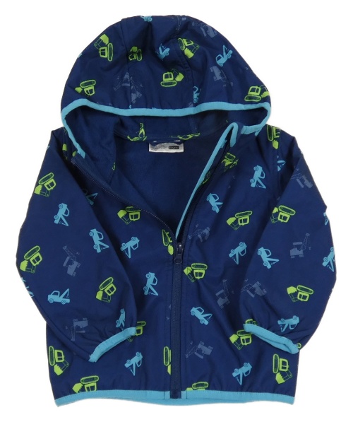 Tmavomodrá softshellová bunda se stavebními stroji a kapucí Ergee