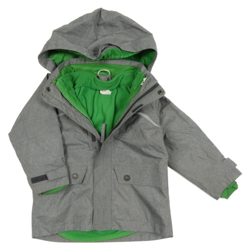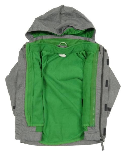3v1 - Šedá šusťáková jarní bunda s kapucí + zelená fleecová vesta H&M
