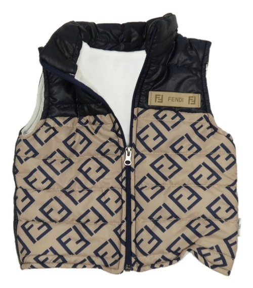 Hnědo-tmavomodrá vzorovaná zateplená šusťáková vesta