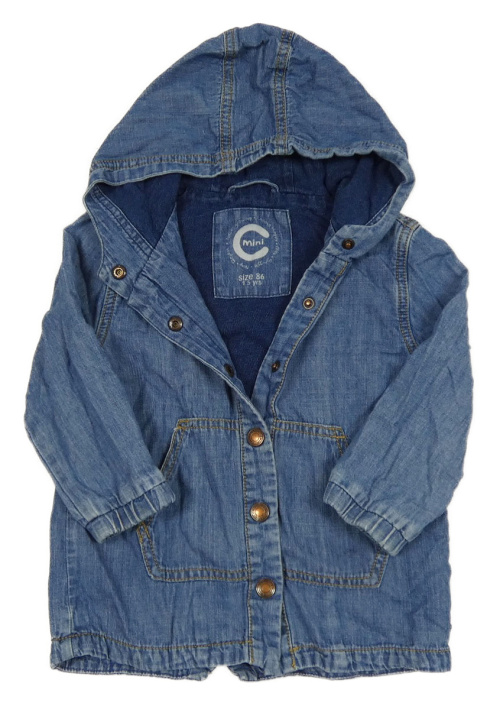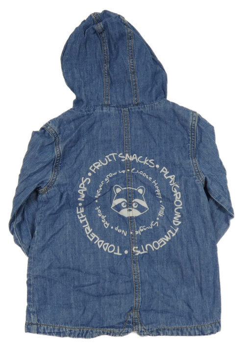 Modrá lehká riflová podšitá bunda s nápisem a kapucí