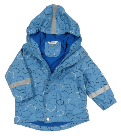 Modrá voděodolná zateplená bunda s mráčky a kapucí