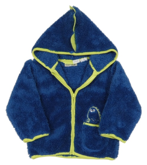 Tmavomodrá chlupatá bunda s dinosaurem a kapucí s ostny Ergee