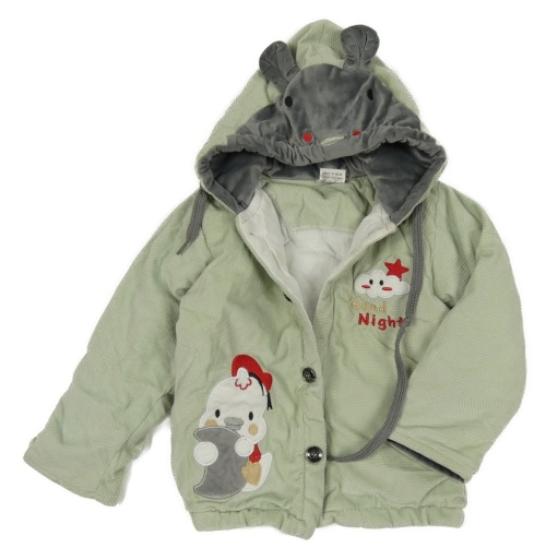 Světleolivový vzorovaný sametový zateplený kabátek s kuřátkem a kapucí