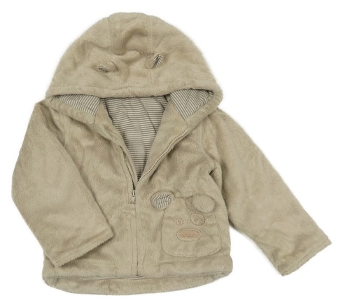 Béžový plyšový zateplený kabátek s medvídkem a kapucí George