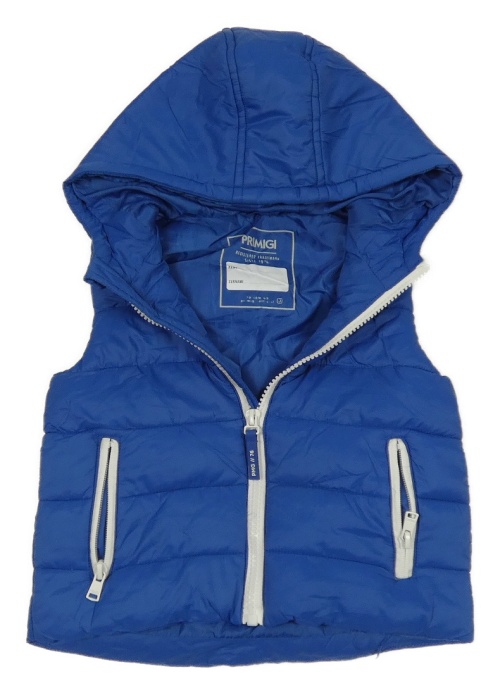 Modrá šusťáková prošívaná zateplená vesta s kapucí Primigi