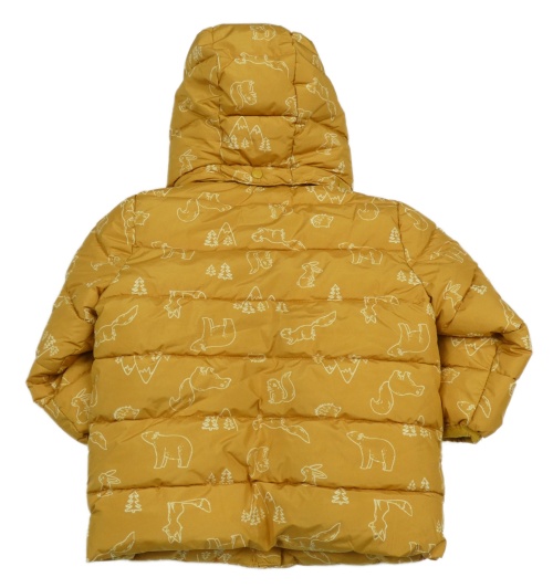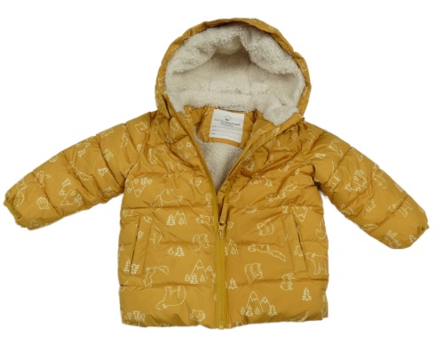 Okrová šusťáková zateplená bunda s obrázky a kapucí
