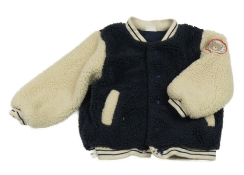 Tmavomodro-béžová huňatá podšitá bunda Next