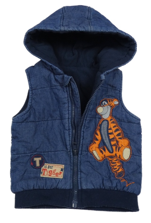 Tmavomodrá prošívaná riflová zateplená vesta s Tygrem a kapucí George
