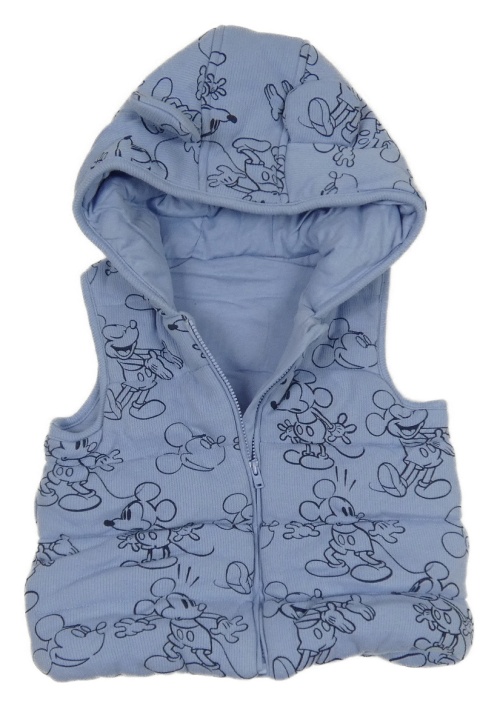 Modrá prošívaná šusťáková zateplená vesta Mickey a kapucí George
