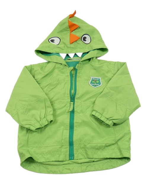 Zelená šusťáková jarní bunda s nášivkou a kapucí - drak