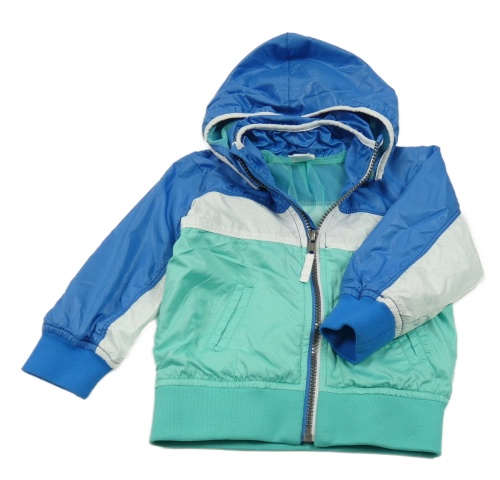 Modro-zeleno-bílá šusťáková jarní bunda s kapucí H&M