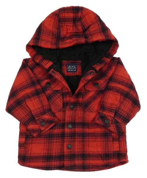 Červeno-černá kostkovaná zateplená košilová bunda s kapucí Next