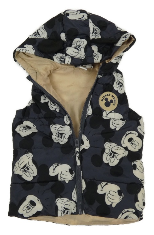 Tmavomodrá šusťáková zateplená vesta s Minnie a kapucí Disney