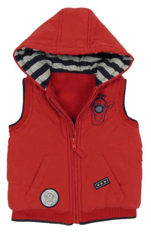 Červeno-tmavomodrá šusťáková zateplená vesta s Tygrem a kapucí George
