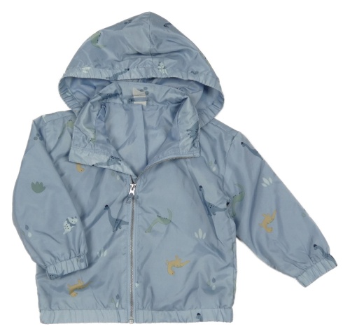 Modrošedá šusťáková jarní bunda s dinosaury a kapucí H&M