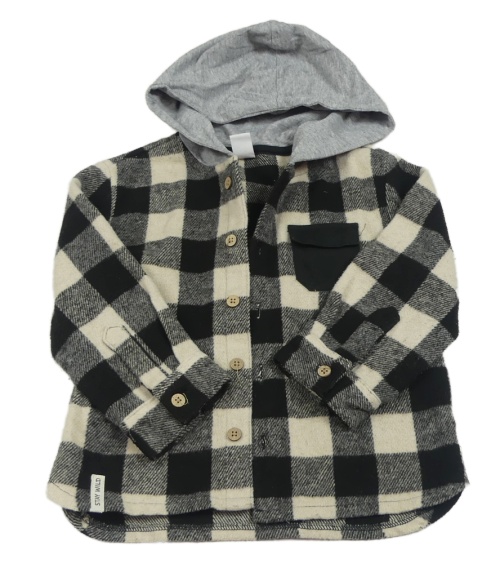 Černo-bílá kostkovaná košilová vlněná bunda s kapucí Topomini