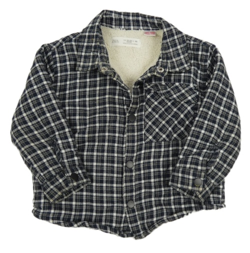 Tmavomodro-šedo-bílá kostkovaná košilová zateplená bunda Zara