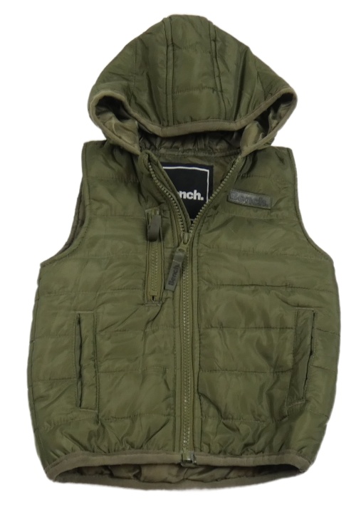 Khaki šusťáková zateplená vesta s nášivkou a kapucí Bench