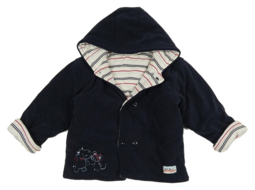 Tmavomodrý fleecový zateplený kabátek s výšivkou a kapucí Tchibo