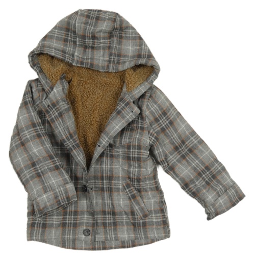 Šedo-bílo-oranžová kostkovaná zateplená košilová bunda s kapucí Nutmeg