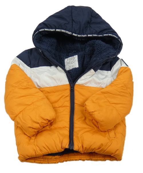 Tmavomodro-bílo-oranžová šusťáková zimní bunda s kapucí F&F