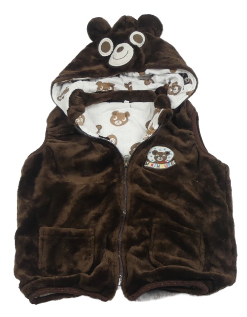 Hnědá chlupatá podšitá vesta s medvědem a kapucí