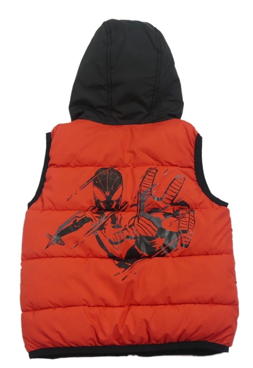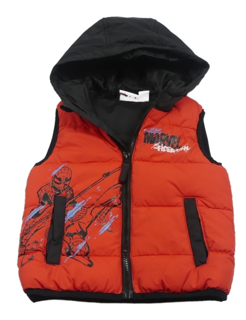 Červeno-černá šusťáková zateplená vesta se Spidermanem a kapucí Marvel