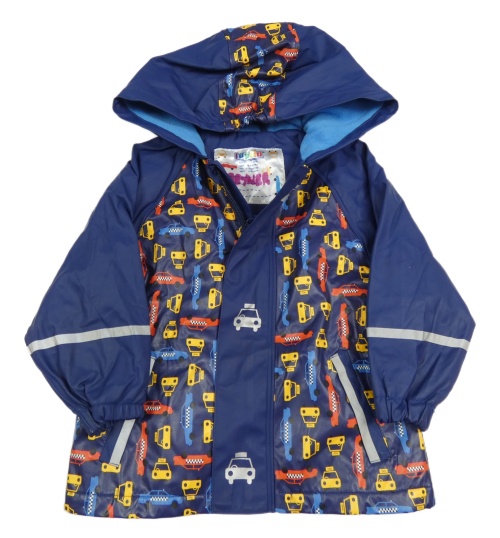 Tmavomodrá nepromokavá lehce zateplená bunda s auty a kapucí Lupilu