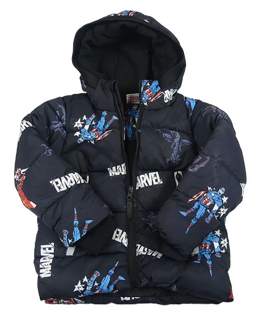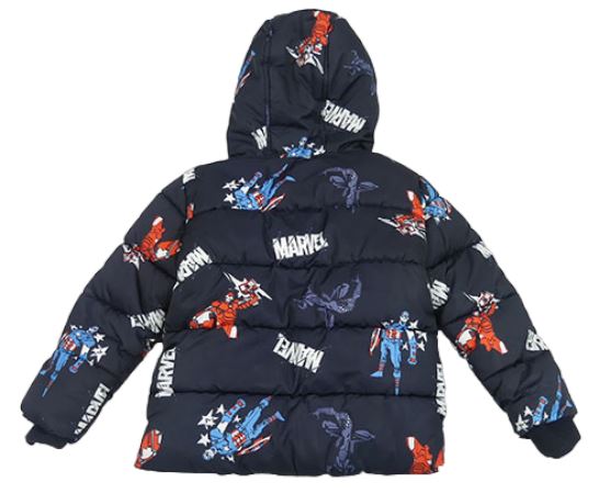 Antracitová šusťáková zimní bunda s hrdiny a kapucí Marvel