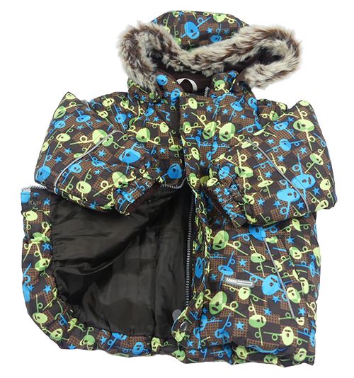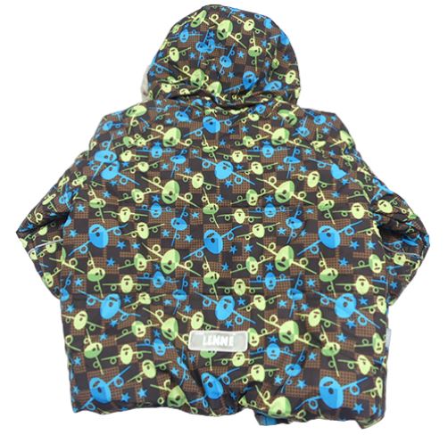 Hnědá kostkovaná šusťáková zimní bunda s letadly a kapucí