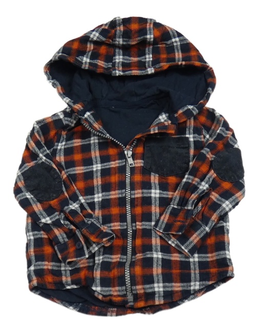 Tmavomodro-oranžovo-bílá kostkovaná podšitá bunda s kapucí Matalan