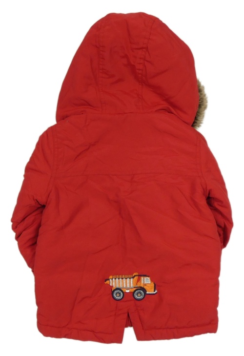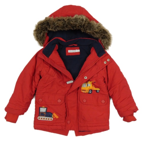 Červená šusťáková zimní bunda s hasiči a kapucí Bluezoo