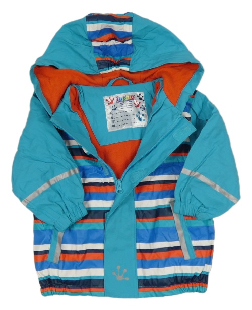 Pruhovano-modrozelená nepromokavá podzimní bunda s kapucí lupilu
