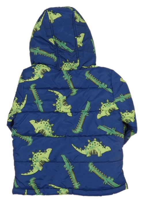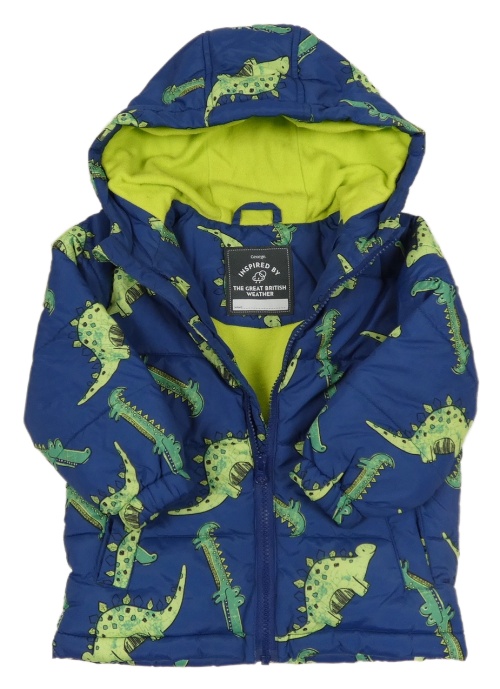 Tmavomodrá šusťáková zimní bunda s dinosaury a kapucí George