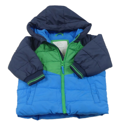 Tmavomodro-zeleno-modrá prošívaná šusťáková zimní bunda s kapucí Tu