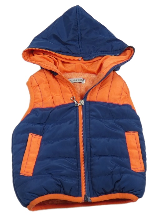 Tmavomodro-korálová šusťáková zateplená vesta s kapucí