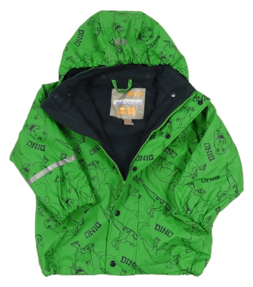 Zelená nepromokavá podzimní bunda s dinosaury a odepínací kapucí Caretec