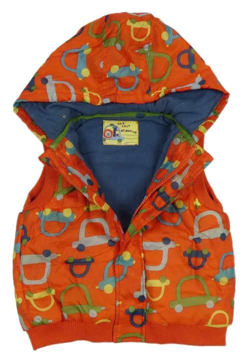 Červená šusťáková zateplená bunda s auty a kapucí Tu