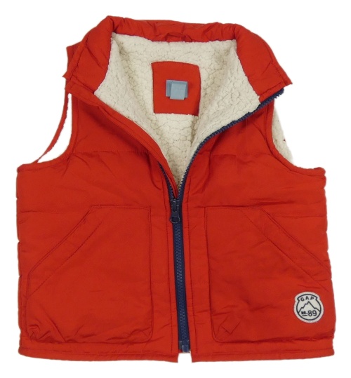 Červená šusťáková zateplená vesta s nášivkou GAP