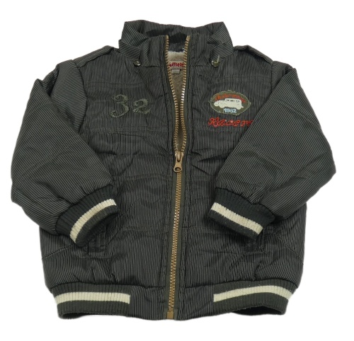 Černo-bílá pruhovaná šusťáková zimní bunda s autem