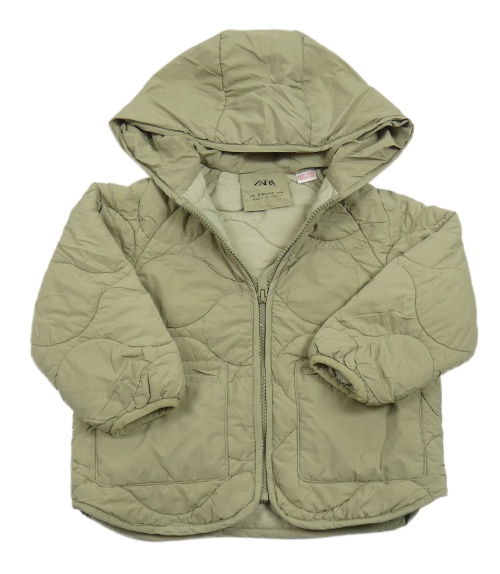 Khaki šusťáková prošívaná zateplená bunda s kapucí Zara