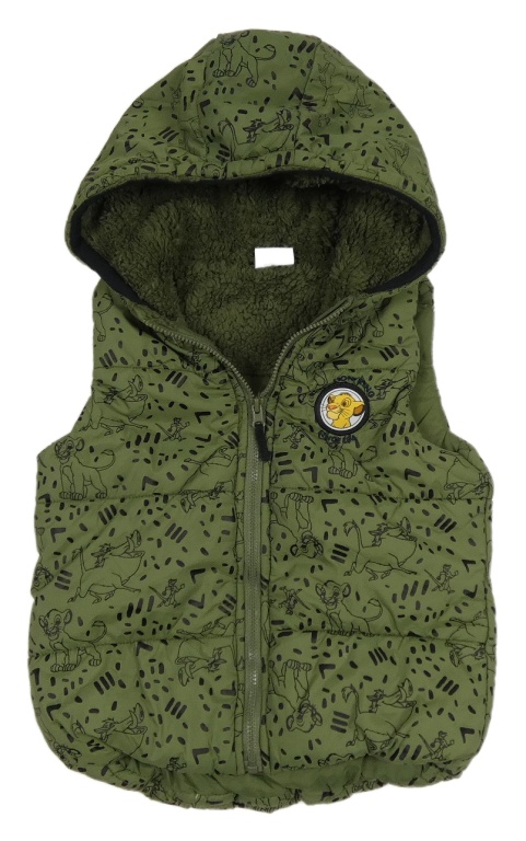 Khaki vzorovaná šusťáková zateplená vesta s kapucí - Lví král Disney