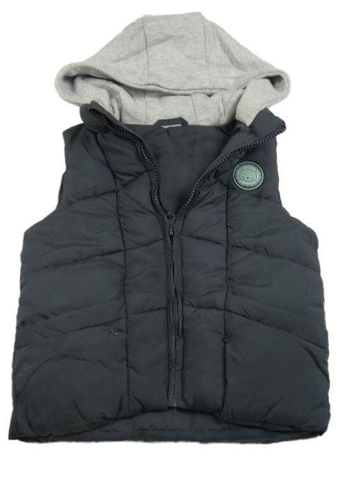 Tmavošedá šusťáková prošívaná zateplená vesta s teplákovou kapucí Dunnes