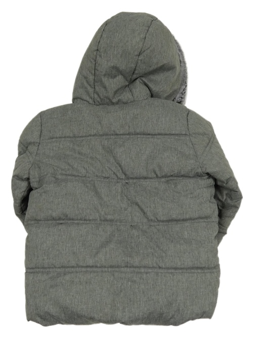 Tmavošedá melírovaná prošívaná šusťáková zimní bunda s kapucí s kožešinou George
