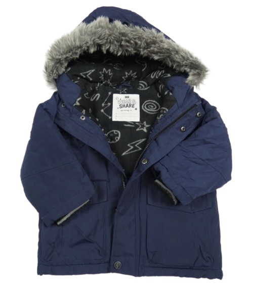 Tmavomodrá šusťáková zateplená bunda s kapucí s kožešinou F&F