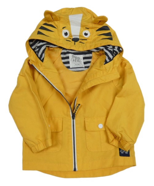 Žlutá šusťáková jarní bunda s kapucí s tygrem F&F
