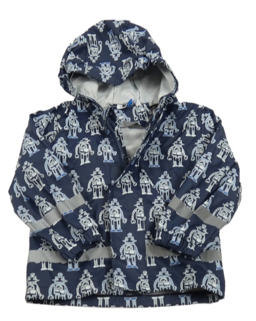 Tmavomodrá nepromokavá bunda s roboty a kapucí