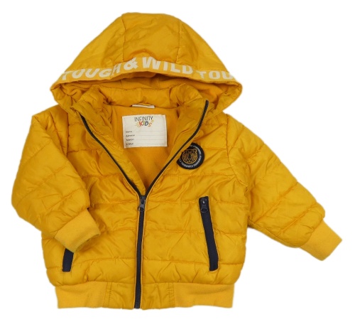 Žlutá šusťáková prošívaná zimní bunda s kapucí Infinity